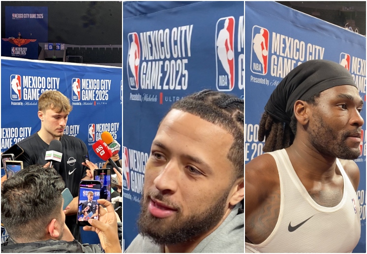 Después aparecieron los Dallas Mavericks, donde los personajes más aclamados por los medios para las entrevistas fueron Anthony Davis, el novato Cooper Flagg, Klay Thompson y por supuesto, Jason Kidd, quien ya había tenido oportunidad de jugar en México y ahora lo hace como coach.